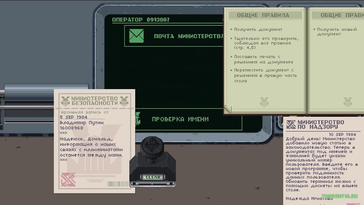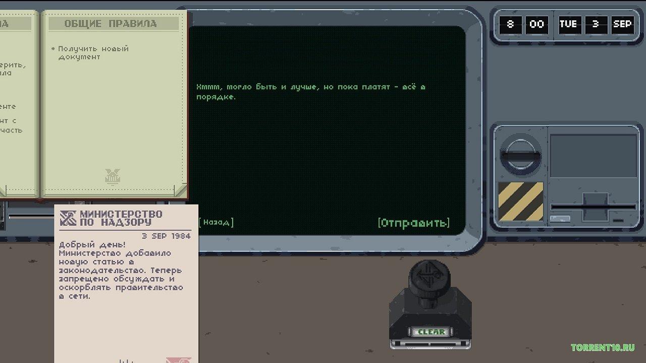 - Представленный игровой проект вдохновлен аналогичной "Papers, Please", немного отличается только игровой процесс.