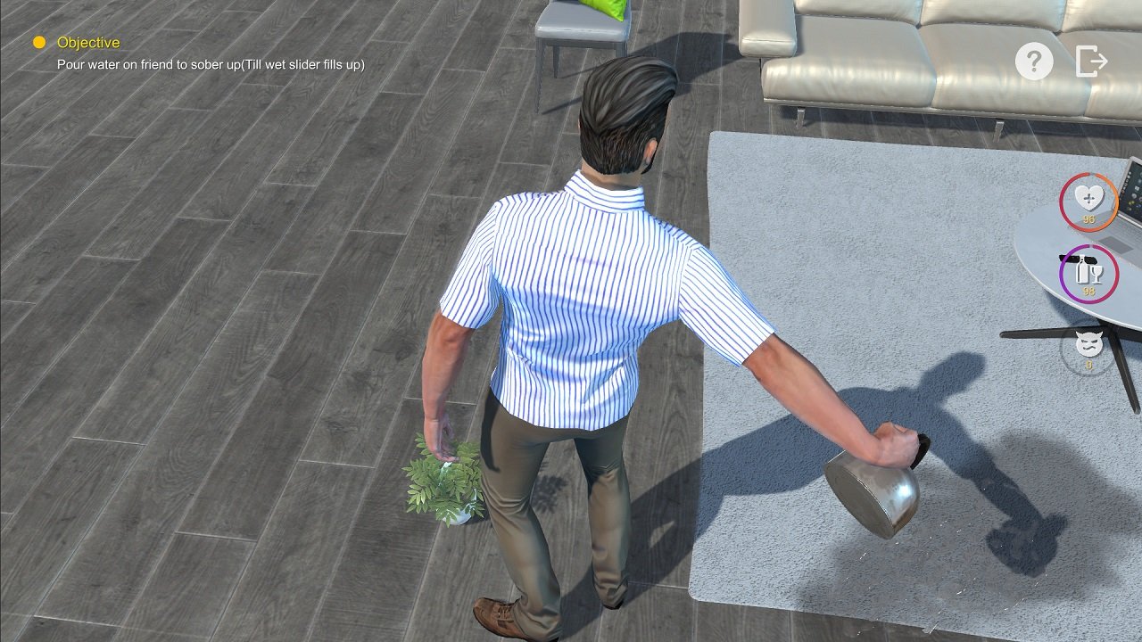 Невероятно весёлый симулятор. Вы – являетесь одним из друзей своего подвыпившего приятеля, либо приятельницы. Ваша задача – навести порядок в доме, после того как вы уложите беспокойного и неадекватного друга спать. Интерфейс игры, позволяет вам изначально выбрать персонажей, которые будут иметь место во всех последующих событиях. То есть, вы можете выбрать образ своего действующего героя и образ вверенного вам пьяного спутника, кому вы и постараетесь помочь от чистого сердца. You have a drunk friend скачать торрент которой вы можете на нашем сайте, позволит вам оказаться в ситуации, когда ваша подруга, либо приятель – убиты в хлам, после продолжительной попойки. Вы, как человек, наделённый благородными взглядами, не можете покинуть хозяина дома наедине со своей бедой. Игра устроена таким образом, что вы постоянно будете получать подсказки, ориентируясь на которые, вы будете совершать все необходимые действия. Среди них: дотащить пропойцу к ванной и помочь принять душ, уложить его спать, навести порядок в доме… Довольно забавная игра, которая, однако, не содержит в себе острых динамически развивающихся моментов. Это скорее – простое и спокойное времяпровождение, которое неприменно вызовет улыбку на вашем лице.