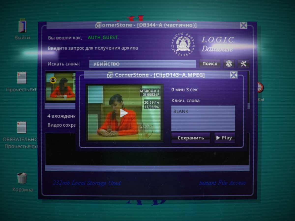 Очень необычная приключенческая детективная игра, которая рассказывает о необычной молодой девушке, у которой внезапно и таинственным образом пропал любимый супруг. Теперь вас вызывают на допросы в полицейские участки, но все как оказывается безрезультатно. Теперь вы как игрок, должны помочь девушке распутать такое таинственное дело. В игре Her Story, скачать торрент которой может каждый посетитель нашего бесплатного игрового портала, вы постоянно должны просматривать в полицейском отделе разнообразные видео пленки, чтобы сопоставлять события, и в конечном итоге, вы должны найти похитителя. Очень много мини квестов вы пройдете в игре. А весь процесс построен на диалогах и заданиях. Очень много сложных головоломок вам предстоит пройти, чтобы найти все улики и поймать загадочного злодея. Не пропускайте ни один видеоархив в полиции, тщательно все изучайте и вместе с вашей очаровательной девушкой, которая вместе с вами возьмет на себя роль детектива, найдите все артефакты, которые помогут вам найти похитителя. Игра русифицирована, так что вам легче будет общаться, изучать записи и продвигаться по уровням, используя всевозможные игровые подсказки. Необычное детективное приключение ждет вашу героиню!