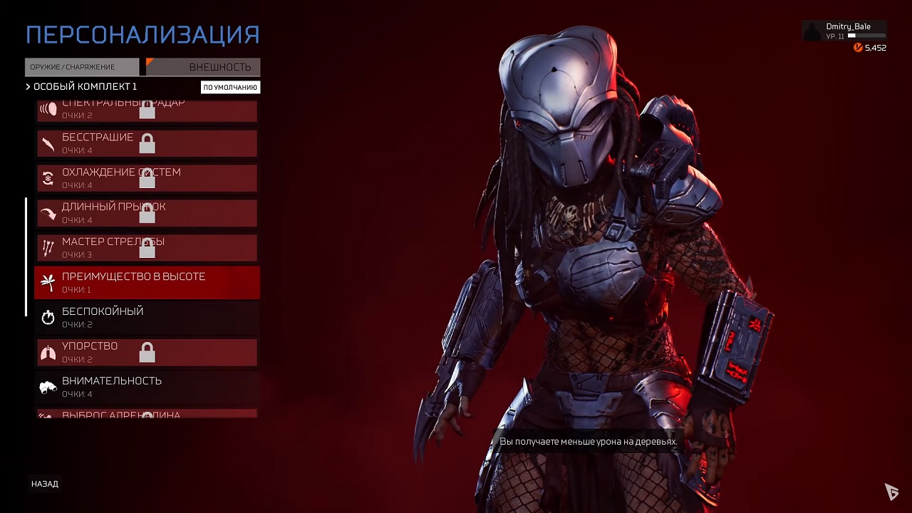 В игре существует насколько классов Хищников и из можно настраивать по своему вкусу. Разберем классы и посмотрим чем они отличаются друг от друга. И так, первый класс - это класс Скаут или Разведчик. Этот класс хищников очень быстрые, ловкие и выносливые. Они очень хорошо владеют оружием дальнего боя. Главным преимуществом является скорость, выносливость, быстрое восстановление энергии, способность прыгать дальше остальных классов. Класс скаутов имеет в запасе меньше запаса здоровья. Потому сильно проигрывает в ближнем бою и не может долго нести большое количество тяжелого снаряжения.