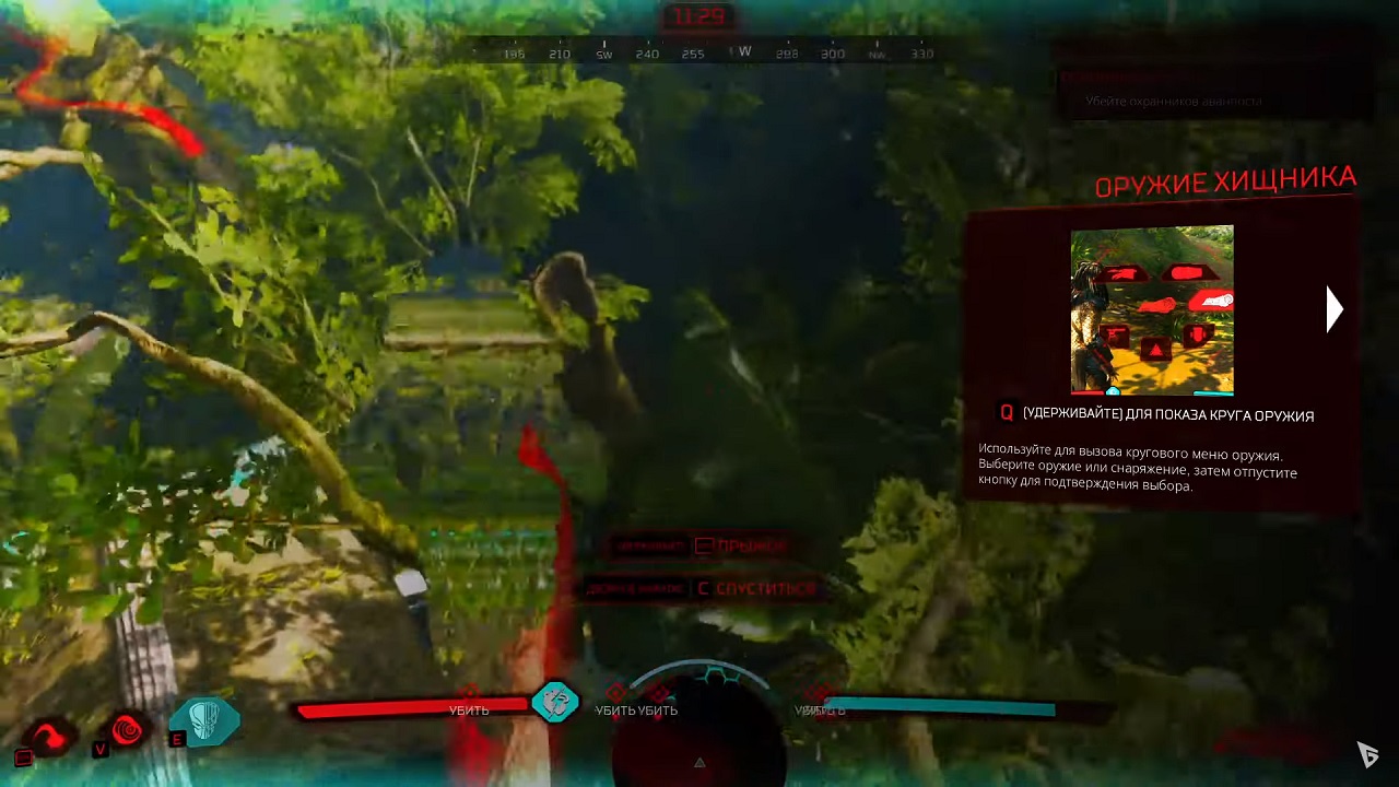 Еще одна удобная вещь в арсенале Хищника - это Combistick. Это некая палка в сложенном состоянии, но в бою ее можно удлинить и она становится копьем. Когда она вам не нужна, можно просто сложить ее обратно. Очень удобное и компактное оружие. А самое главное его можно использовать как в ближнем бою, так и на расстоянии.